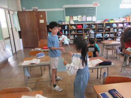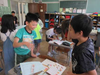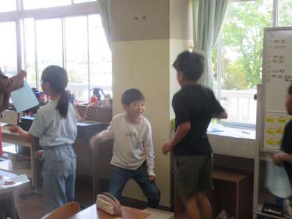 外国語活動では、英語でのじゃんけんの言い方を学習しました。すでに言い方を知っている子も多くいましたが、楽しそうにじゃんけんをしていました。