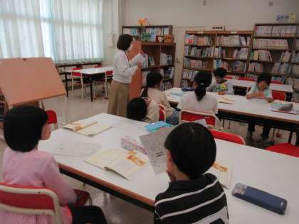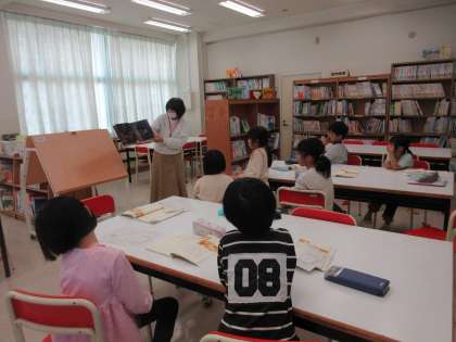 「図書館たんけん」では司書の先生に、本の並び方やなかまわけについて教えてもらいました。実際に探してみたり、番号や並び方について確かめてみたりして学びを深めていました。
