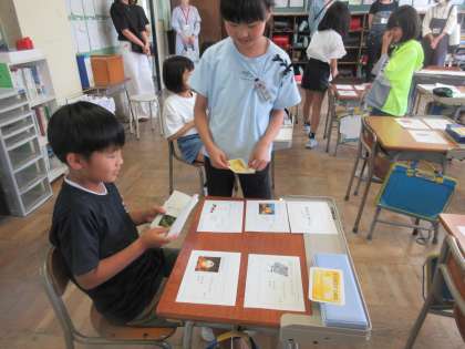 今日の学習参観では、算数科「買い物ゲーム」をしました。自分で買いたい商品を選んだり、おつりの計算をしたりしました。