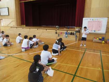 学級会で話し合って決めた「めちゃぶつけドッジボール」をしました。5・6年生合同で体をたくさん動かし、楽しみました。