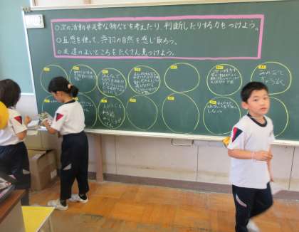 朝、登校したら自分のめあてを黒板に書きました。一人一人がやる気を高めています。