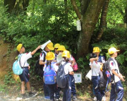 始めの活動は、「森の動物クイズ」です。森の中に設置されたクイズに答えていきます。