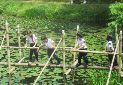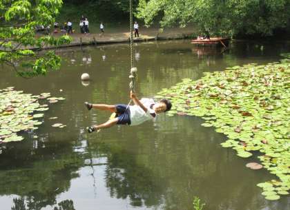 ターザンロープで風をきる気持ちよさを感じたり、池ジャングルから落ちないようにスリルを味わったりしました。