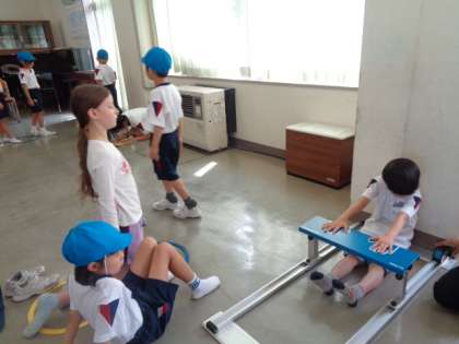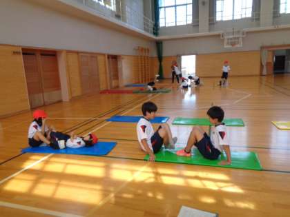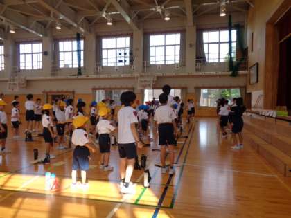 全校みんなで体力テストを行いました。グラウンドや体育館、校舎内を使って、走・投・跳の各種目に取り組みました。2〜6年生は、昨年度より記録が伸びたでしょうか?