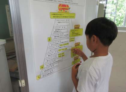 授業で学んだ「引用する」という言葉を使って、友達に説明する姿も見られました。