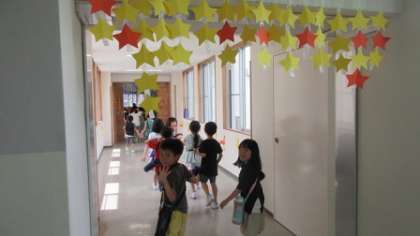 今日は、なかよしタイムに6年生が企画した七夕集会がありました。1年生の子供たちは、ゲームを楽しんだ後、今月の歌「帰り道」も伸びやかな声で歌っていました。インタビューでは、多くの子が集会の感想を発表しました。教室に戻ってから七夕集会の感想を聞くと「とっても楽しかった!」「6年生が作った花火の映像がすごかったよ」「花火大会に行きたくなったな」など、とても楽しんだようでした。