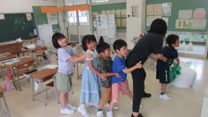 2つのグループに分かれて「おおきなかぶ」の音読発表会をしました。どちらも声がよくそろっていて、練習の成果が出ていました。音読を聞くときには、友達の音読に合わせてミニ芝居をしました。発表後には、お互いのよかったところや頑張ったことを伝え合いました。