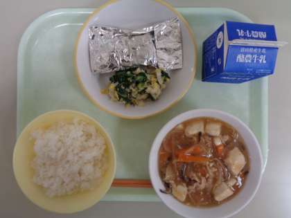 今日は、「ごまびたし」にごまが使われています。ごまは、エジプトやインド、アメリカやアフリカ等、世界中で作られ、食べられています。昔は「食べる薬」として、とても大切にされた食べ物だそうです。小さなごまは、半分が油からできていて、しぼってごま油を作ることができます。独特のかおりが好まれて、中華料理でよく使われます。今日の「豆腐の野菜あんかけ」にも、ごま油が使われています。