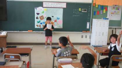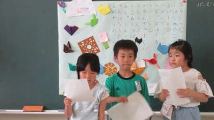 今日は、「1年生おひさまキラキラしゅうかい」をしました。子供たちが司会からルールの説明までよく考えて、みんなで楽しめる集会を開きました。トランプやおにごっこ、フルーツバスケットなどの遊びをしました。最後のお話しタイムでは、楽しめましたか?との問いかけに、全員が手を挙げていました。