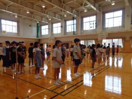 今日から2学期が始まりました。体育館では、八幡っ子がそろって始業式を行いました。式の後には、2学期の学校生活や80周年記念行事についての話を聞きました。2学期も充実した学校生活となるよう、ご協力をどうぞよろしくお願いいたします。