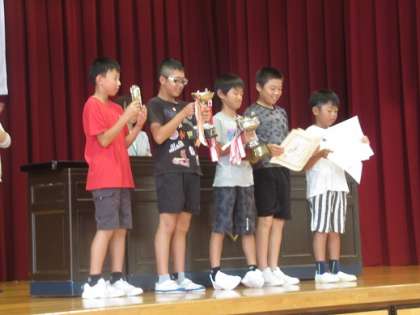 始業式後の受賞伝達式では、自分の努力したことや成長したことについて意識するとともに、2学期の生活への意欲を高めていました。