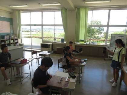 学級では、夏休みの絵日記を見せながら、心に残った場面を発表し、思い出話に花を咲かせていました。