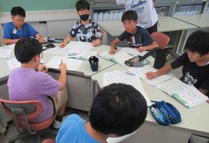 初めての授業でしたが、早速友達の分からないところを理解できるように、図などを使って説明する姿や、協力しながら課題に取り組む姿が見られました。