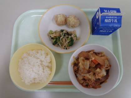 今日のホイコーローには、豚肉の他にも、玉ねぎ、にんじん、キャベツ、たけのこ、ピーマンが入っています。今日も、おいしく味わって食べましょう。