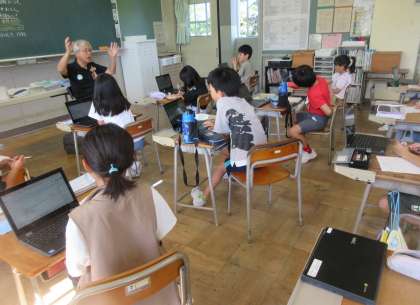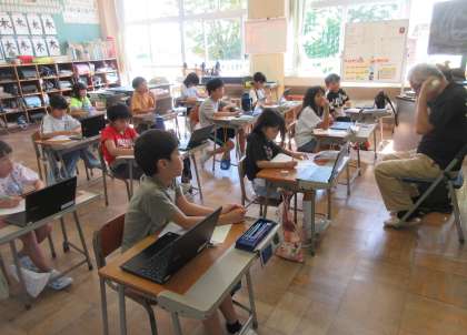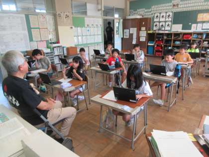 総合的な学習の時間では、八幡の自慢を発見しています。今回は、毎月のけんだま教室で来ていただいている先生にインタビューをしました。
