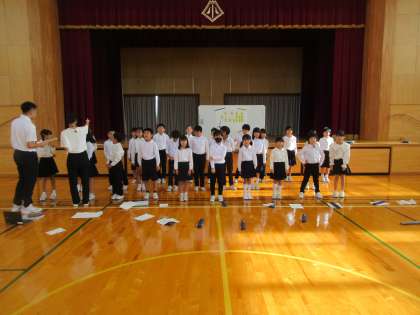 今回は、初めて体育館で練習をしました。また衣装も着て気分を高めました。おおまかな立ち位置や流れなどを確認したり、群読や合唱練習をしたりしました。