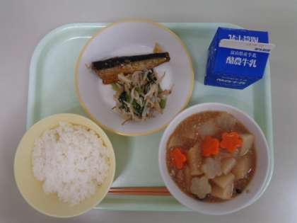 今日の献立は、ごはん、いわしのしょうが味、昆布和え、