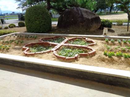 正面玄関前にあった池が、創校80周年記念事業として、きれいな花壇に生まれ変わりました。