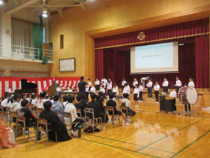 学習発表会予行が行われました。子供たちは、これまでの練習の成果を発揮しようと真剣に取り組んでいました。