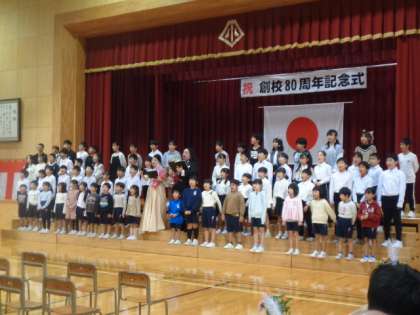 本日、創校80周年記念式典、記念講演、学習発表会が無事終了しました。早朝より、ご来賓の皆様、保護者の皆様、地域の皆様に八幡小学校にお越しいただきました。そして、八幡っ子に大きな拍手と温かいメッセージをたくさんいただきました。本当にありがとうございました。