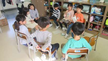 おひさま集会で何をするか話し合いました。友達の話をよく聞きながら、自分の意見を伝えたり、まとめたりと子供たちが話し合いを進めました。うなずきながらじっと目を見て友達の話を聞く姿が素敵でした。