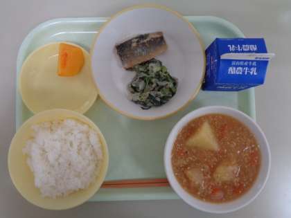 じゃがいものそぼろ煮、柿、牛乳 です。