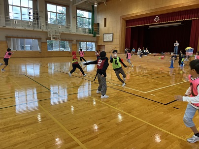 飾りや遊びにハロウィン要素満載の集会を6年生が企画し、5年生を招待しました。