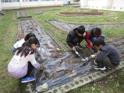 市からいただいた富山県産のチューリップの球根や本校で育てた球根を花壇に植えました。子供たちは一つ一つを丁寧に植え、「何色の花が咲くか楽しみだな」「色とりどりな花壇になりそうだな」と話していました。