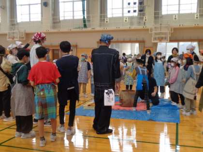 PTA主催のふれあい餅つき大会が、PTA役員、保護者ボランティア、おやじの会の方のご協力により開催されました。子供たちは、「よいしょ!」とかけ声をかけながら、楽しく餅をつきました。
