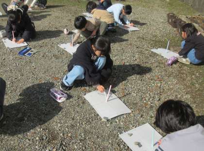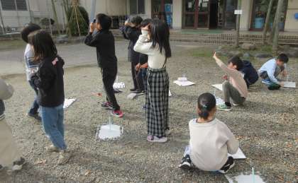 理科では、太陽の位置が変わるかどうかを調べました。自作の観察道具で太陽の位置が変わるのかを観察しました。