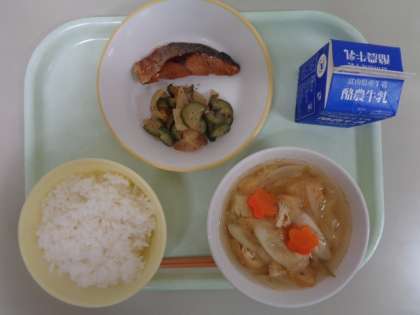 今日の献立は、ごはん、魚の竜田揚げ、甘酢和え、