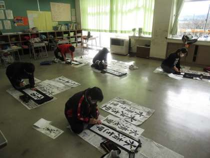 書き初め大会に向けて、練習を始めました。書写「文字の大きさ」の学習で学んだことを生かし、漢字は大きく、平仮名は小さめに書くことを意識しました。「もう一枚書きたいです」と納得いくまで集中して取り組んでいました。