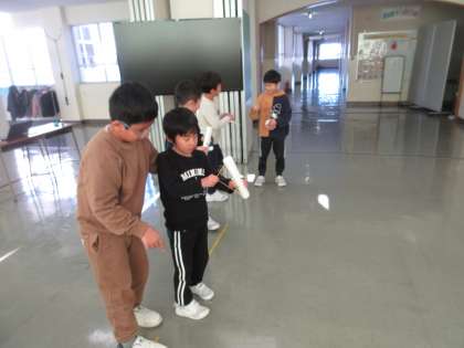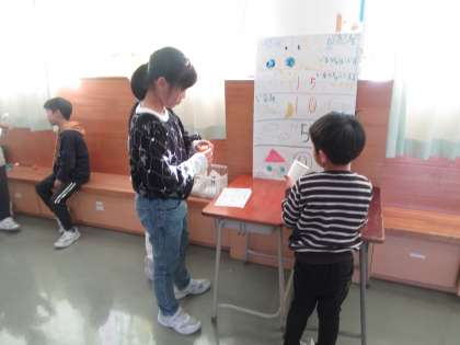 これまで、準備してきたおもちゃで楽しく遊んでもらいたいと、案内をしたり、やり方を説明したり、上手くいったときにはたくさん拍手をしたりして1年生を楽しませていました。
