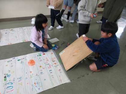 2年生の子供たちは、「やってよかった。」「また、やりたいな。」「やり方がちゃんと分かると楽しんでもらえる」「パタパタカーを競争にしてよかった」「おもちゃの数を増やしておいてよかった」等、この学習を通していろいろなことを学ぶことができた様子でした。