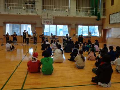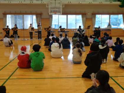 6年生が中心となって、全校児童集会を行いました。金管クラブが日頃の練習の成果を発表したり、みんなで風船を使ってゲームをしたりしました。寒い日でしたが、心がぽかぽかする温かい言葉が交わされた集会になりました。