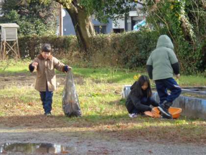 3年生の子供たちが、今日の晴れ間を生かして落ち葉拾いをしてくれました。秋から毎日落ち葉がいっぱいの八幡小学校。拾っても拾ってもきりがない状態です。「手が冷たい」、「袋いっぱいになったら重い」、「腰が痛くなってきた」などと言いながらも、張り切って笑顔で落ち葉を拾う3年生を見て、とても頼もしく感じました。