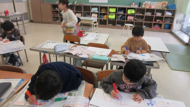 1月9日(木) 1年 図画工作科「せんのぼうけん」