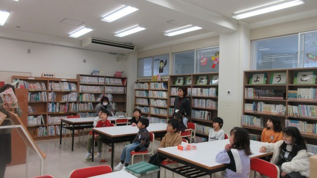 1月14日(火) 1年 図書室での本の読み聞かせ