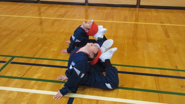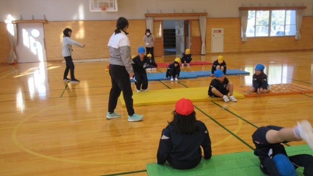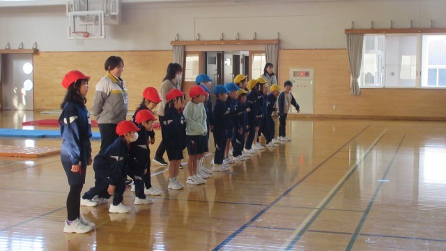 後半は、前回り、後ろ回り、壁倒立をしました。コツを教えていただき、どんどん上達している様子でした。今日教わったことをもとに3学期もいろいろな運動遊びをしていきます。