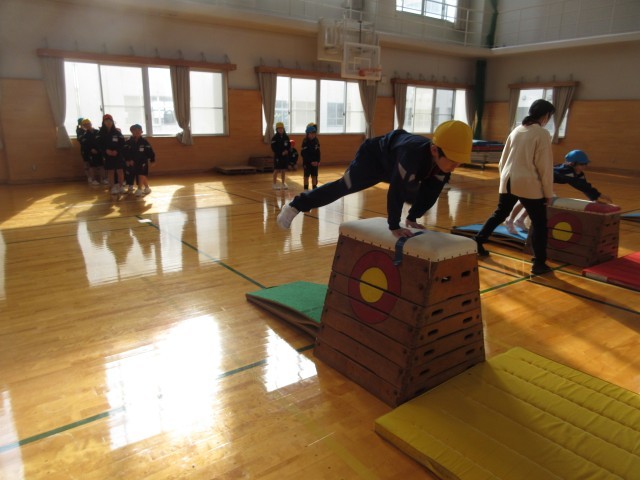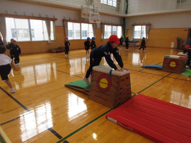 1月22日 1,2年生 体育科「跳び箱あそび」