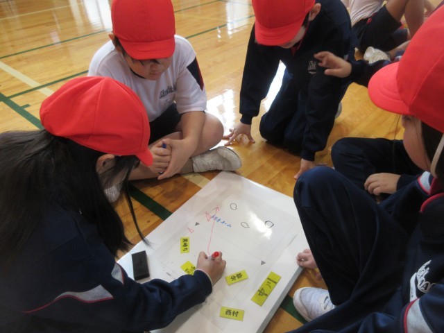 どうすれば得点しやすいのかを作戦板を使いながら、話し合っていました。