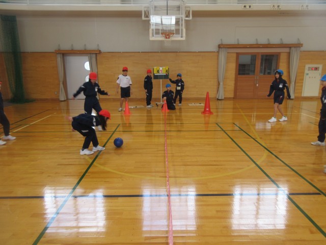 3・4年生の体育科では、合同で「フロアーボール」をしています。だいぶ慣れてきたので、より高度な戦いになってきました。