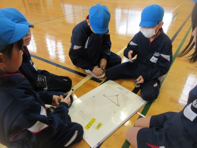 3・4年生の体育科では、合同で「フロアーボール」をしています。だいぶ慣れてきたので、より高度な戦いになってきました。