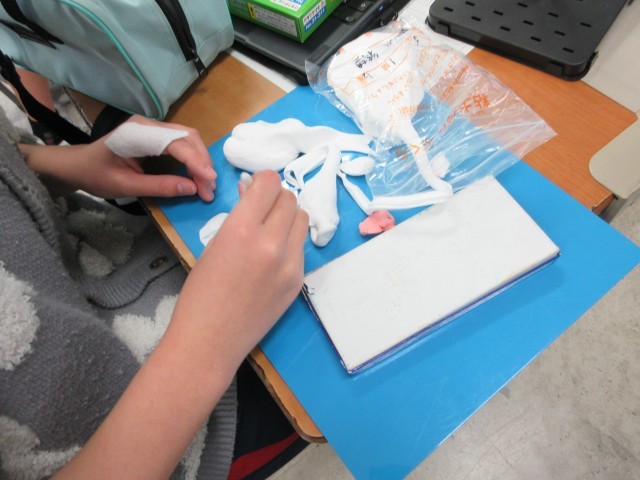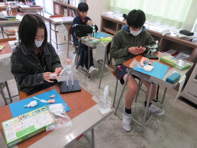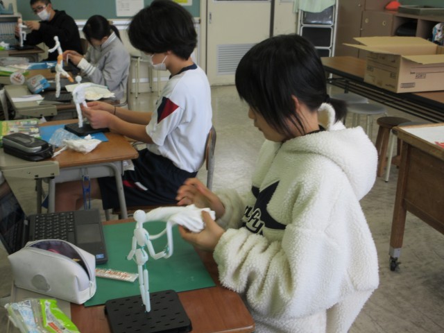 未来の自分の姿をイメージして、骨格と粘土で人形をつくっています。