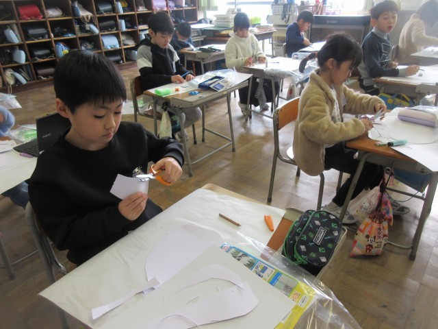 図画工作科では、版画を作っています。テーマは、「3年生での思い出」です。