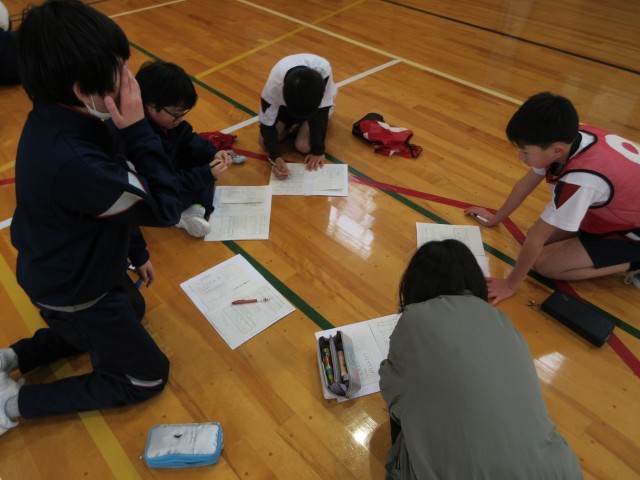 自分たちの試合を振り返り、丁寧に分析しています。だれが、どう動けば勝利につながるのか、短い時間に真剣に話し合いました。