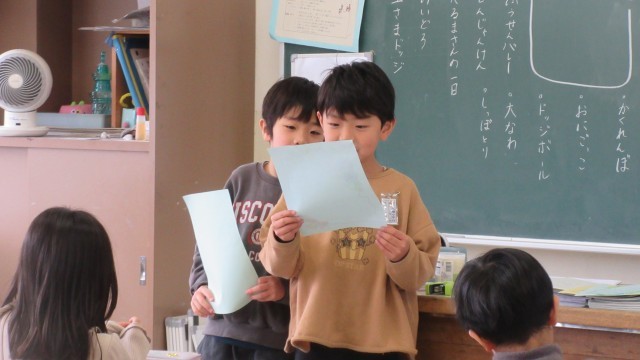 1年生では、お世話になった上級生や先生方に、学習を通してありがとうを伝えています。