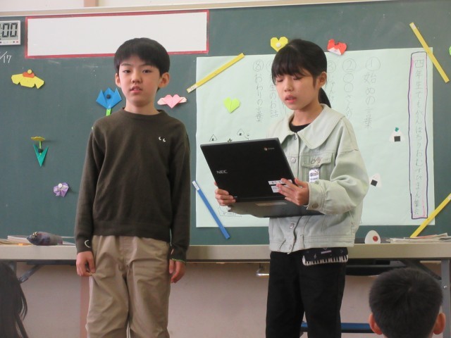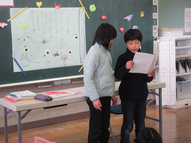 3月17日(月)3年「4年生でもがんばろう おむすびまん集会(その1)」