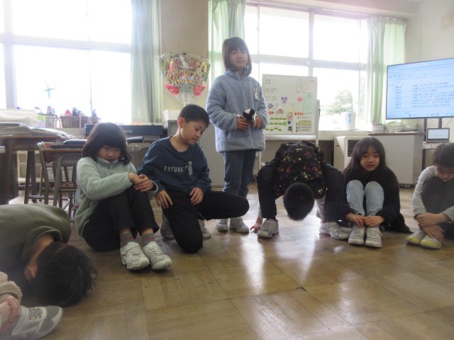 3年生最後の集会を行いました。今回は、班ごとに出し物を考えました。