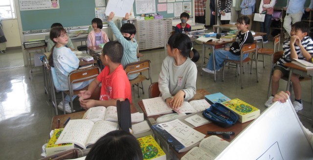 今年度、初めての学習参観を行いました。「漢字の成り立ちクイズ」といって、漢字の元の形をカードに書いて、何の漢字か当てるクイズです。